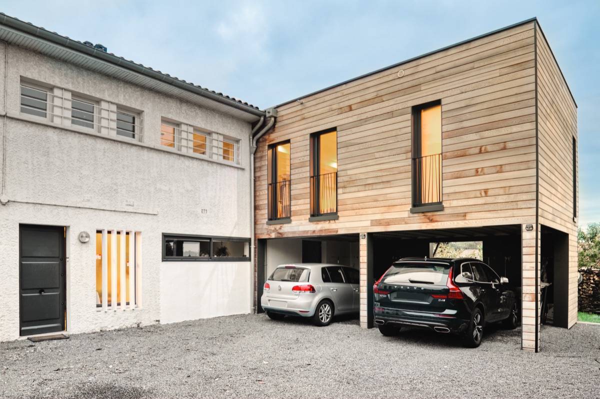 Architecture en étage pour cet agrandissement avec Carport par Cube in Life