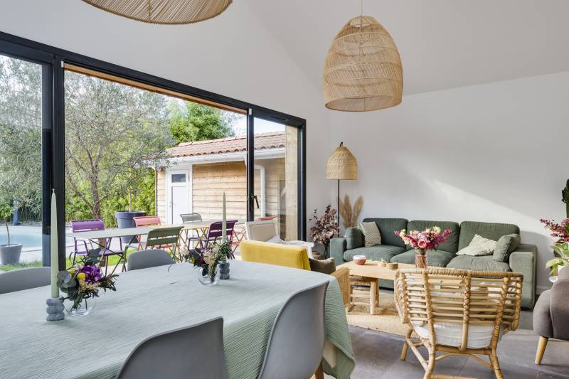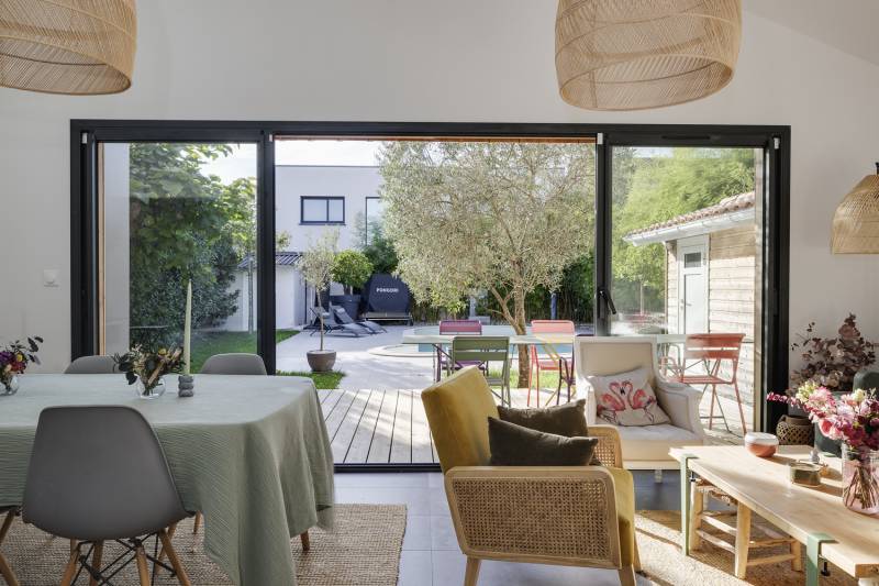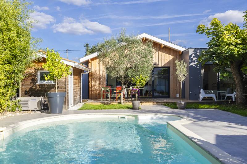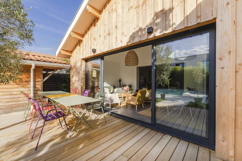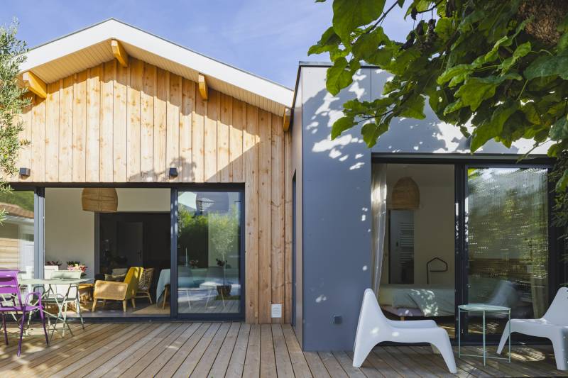 Le jeu des bardages sur les agrandissements cube in life ont permis de sublimer ce nouvel ensemble rendant radicalement différent l'arrière de la maison.
