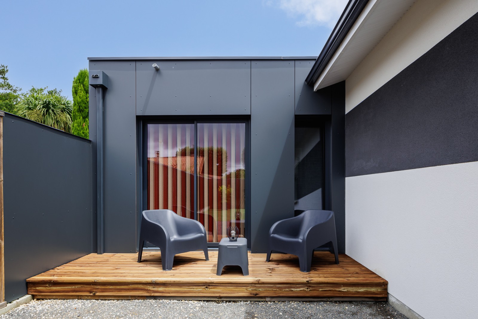 Création d'une terrasse couverte avec un studio de jardin sur Lege Cap Ferret par Cube in Life